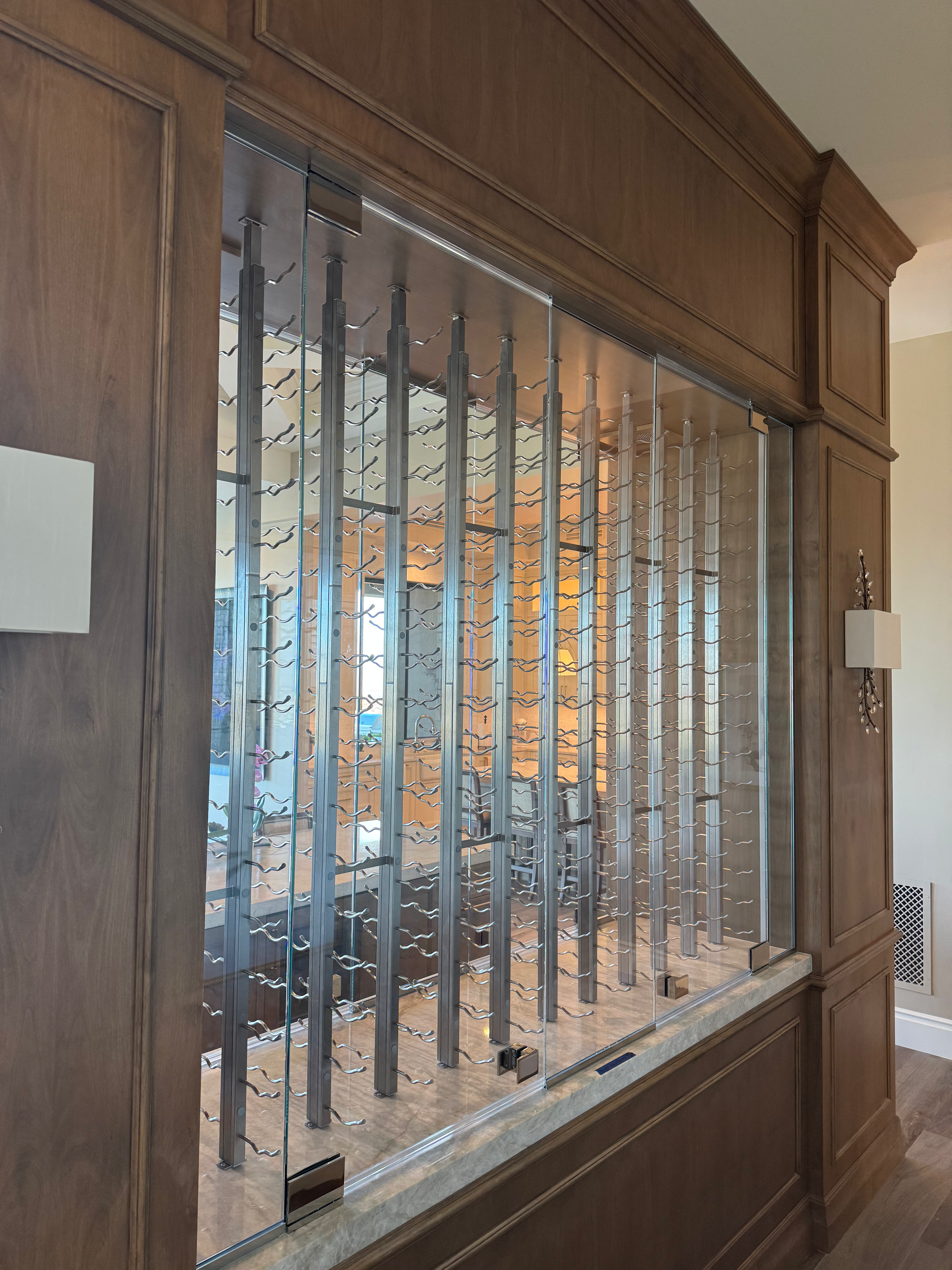 Premium tabletops, wine cellar enclosures, and residential features like glass for cabinets doors or dividers, designed for safety and clarity.